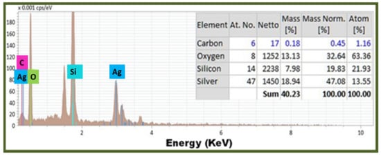 Obtained results of the elemental study of Ag + SiC (5 vol.%) composite layer.
