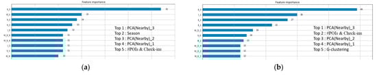 Feature importance of Batch 2. (a) Represents rental demand, and (b) represents the drop-off one.
