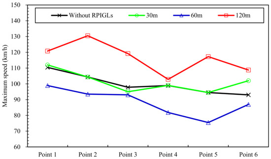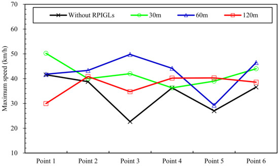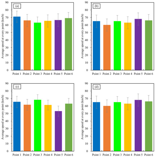 3.2.1. Effect on Vehicle Speeds at Different Observation Points