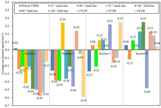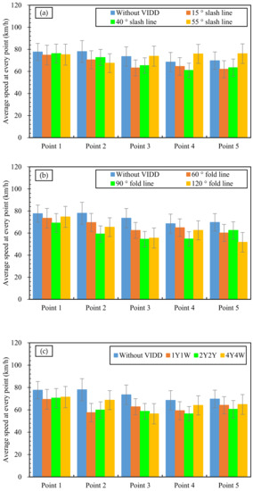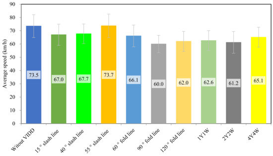 3.2. Effects of VIDD on Vehicle Speeds in Middle of Long Downhill Tunnel