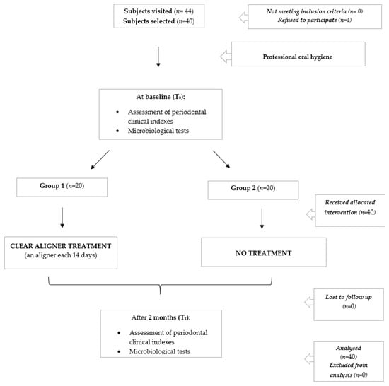 | GROUP 1 (Trial Group) | Signature of the informed consent for the study Professional oral hygiene and motivation to the domiciliary oral hygiene After 14 days from the professional oral hygiene, assessment of periodontal clinical indexes and execution of microbiological tests (T0) Delivery of the first clear alignment and change each 14 days After 2 months from T0, re-assessment of periodontal clinical indexes and re-execution of microbiological tests (T1) |