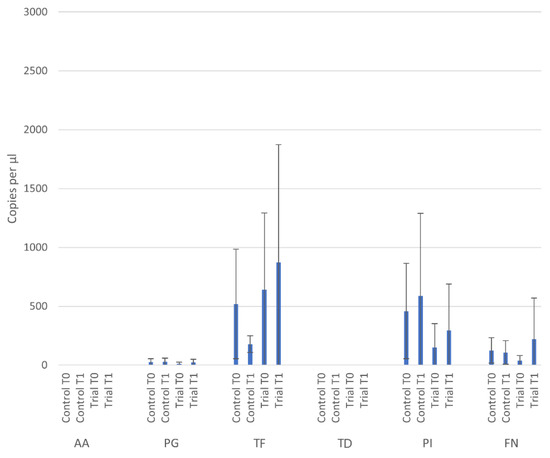 | Treponema denticola | Control T0 | 0.00 | 0.00 | 0.00 | 0.00 | 0.00 | p > 0.05 |
