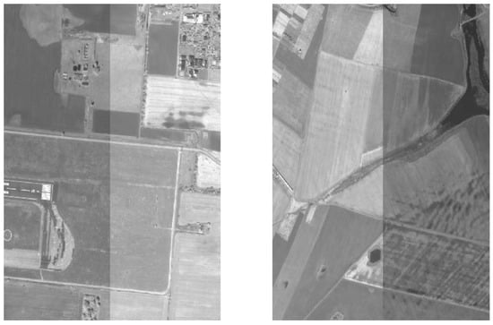 There have been many studies for high-resolution satellite image mosaics in the ground coordinates [8,9,10,11,12]. The proposed algorithms deal with radiometric differences in images caused by seasonal changes [8], image registration and cloud detection with removal [9,10], efficient processing [11], and color balancing [12,13]. Most studies are carried out with photogrammetrically processed orthoimages. However, the cost of these photogrammetric processes should increase with the number of images in the delivered bundle.