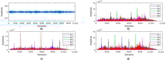 Example of the incoming acquired rA[n] in a single receiver (a), as well as the correlation functions for the three available ULPSs (b–d).