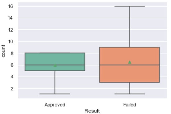 Another interesting observed attribute is the number of subjects the student was enrolled in and the relation with their final status. Figure 8 shows a box-plot for both groups of students versus the number of subjects enrolled. Even though the mean and median of subjects for both groups were the same (Success: median = 6.0 and mean = 5.93; Fail: median = 6.0; and mean = 6.47), a Mann–Whitney test showed a significant statistical difference between them (statistic = 2,138,630.0, p-value < 0.05).
