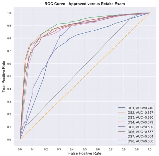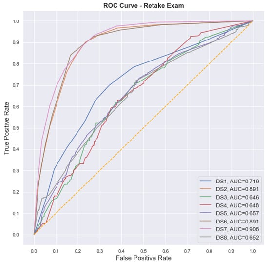 - Queiroga, E.; Cechinel, C.; Araújo, R. Predição de estudantes com risco de evasão em cursos técnicos a distância. In Anais da XXVIII Brazilian Symposium on Computers in Education (Simpósio Brasileiro de Informática na Educação (SBIE 2017)); de Menezes, C.S., Melo, J., Eds.; Sociedade Brasileira de Computação—SBC: Recife, Brazil, 2017; pp. 1547–1556. [Google Scholar]