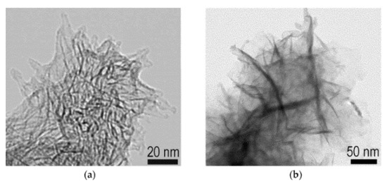 TEM images of carbon nanohorns (a) without or (b) with anatase [101].