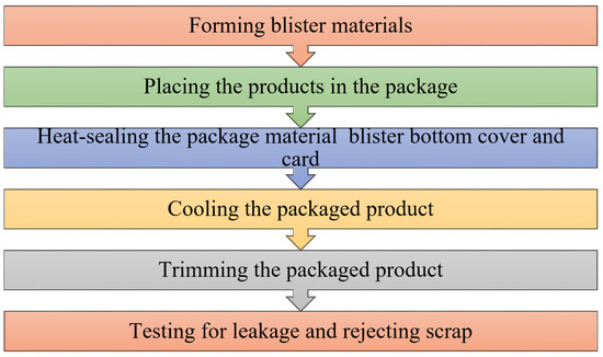 In the scissor manufacturing industry, different scissor products have different shapes. After the primary manufacturing process, a scissor product needs to be packaged using a machining device. During the forming process, Polyvinyl Chloride (PVC) and other materials can be combined to form a blister package component. The packaged part of the scissor package product includes the blister top cover, blister bottom cover, blister lining, and card. The blister packing machine is a standard package machining device used to form a blister element and heat seal it with a card. High-quality packaging protects the scissor product from abrasion. However, different scissor shapes may form blisters. The card is difficult to handle because of the blister component’s rough surface. Figure 2 shows the packaging procedure. The different lidding structures require different equipment settings, such as pressure, dwell time, and seal temperature settings, in the heat-sealing process. The glue material coating weight is critical for determining the seal quality. An incorrect heat seal may cause package leakage, resulting in the possibility of product abrasion. The heat-seal process may eventually cause moisture to enter the package, affecting product quality. Thus, scissor products should be packaged with heat-seal coatings of appropriate thickness. During the heat-sealing process, the machine seals from the left side to the right side of the package component to maintain appropriate heat-seal coating thickness. Therefore, the scissor product package should be placed with the appropriate area between the product-containing cavities during the trimming process. The package quality should be validated through leakage testing, and any unqualified package should be withdrawn. The main factors in the packaging machining process include the heat-sealing time, cooling time, the blister bottom cover material, and the card material. This study uses equipment data such as heating time, pressure, and cooling time to predict packaging quality.