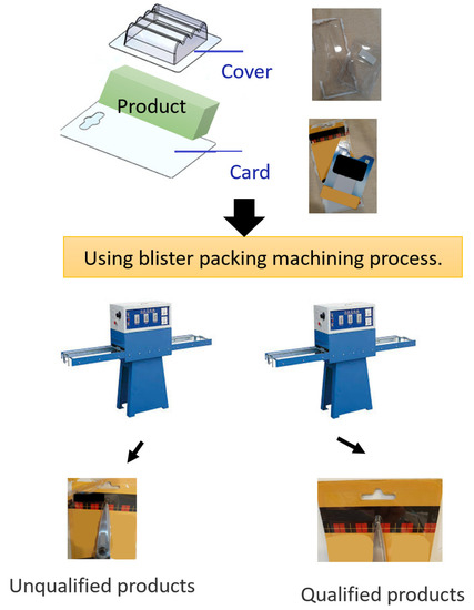 We used two datasets as case studies to demonstrate how the proposed method uses data analytics for anomaly prediction. Here, the manufacturing case aimed to predict yield failure in the semiconductor manufacturing process.This study aims to address the requirements of a practical manufacturing factory. Hence, we selected a conventional product packaging company as another case. The case is a typical small-sized manufacturing enterprise in Asia; they have a standard operating procedure and conventional production facilities to package different types of scissors and other cutting tools. The case used the blister packing machine to package finished goods. The customized scissor product posed a challenge to completing the packaging process, which could be caused by faulty packaging and an incomplete seal as a packaging component (see Figure 6). Finished goods with faulty packaging are deemed unqualified products. Small-sized manufacturing enterprises may not be ready for Industry 4.0 migration and face the challenge of insufficient funds (e.g., funds for purchasing advanced equipment). Similar to other small-sized manufacturing enterprises, the case at improving the quality of current manufacturing processes herein was performed using an economic means rather than purchasing new intelligent equipment to achieve Industry 4.0. Therefore, this study improves the manufacturing process using artificial intelligence, which only requires current equipment data to improve smart manufacturing. In this case, we predicted the quality of scissor product packaging using a blister packing machine setting to correctly seal package components.