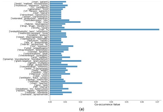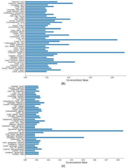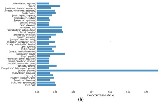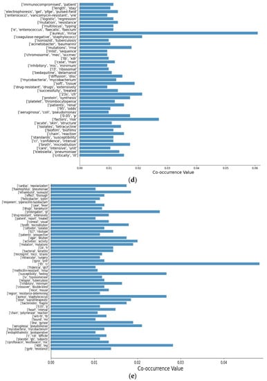 Resultant sets with co-occurrence value for: (a) amikacin; (b) ethambutol; (c) isoniazid; (d) linezolid; (e) moxifloxacin; (f) pyrazinamide; (g) rifampicin; (h) streptomycin.