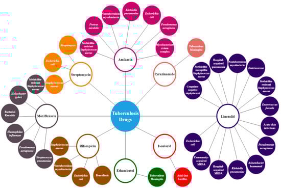 The resultant sets are analyzed and an important inference is extracted about the drugs. It determines the pathogens that these drugs are active against, in addition to TB as given in Figure 4. The antibiotic drugs developed for a particular disease work against the pathogen causing that disease. It inhibits the growth of the microbial targets without harming the host. Each class of antibiotics has a unique mechanism of action. They can be the inhibitors of cell wall synthesis, inhibitors of protein synthesis, inhibitors of cell membrane function, inhibitors of nucleic acid synthesis or inhibitors of other metabolic processes [32]. It depends on the nature of their structure and their affinity to the target. A mechanism of action of a drug can work against many pathogens. Therefore, that drug can be used in the treatment of diseases caused by such pathogens. For example, moxifloxacin is also effective against Helicobacter Pylori, a bacterium which causes ulcer and might progress to stomach cancer [33,34]. Thus in addition to TB, moxifloxacin can also be used in the treatment of these two diseases.