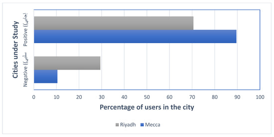 Figure 2 show the proportion of positive and negative feelings expressed by people residing in the cities of Mecca and Riyadh. It is observed from the plots that users from both regions expressed positive emotions much more than negative ones. However, upon conducting the experiments (to support our comparative study), we observed that users from Mecca city expressed a high degree of positivity (~90%) in comparison to the positivity expressed by users residing in Riyadh (~70%). This can be attributed to the fact that people residing in holy places are regularly exposed to religious remembrance and rituals that inculcate a shared feeling of inner harmony due to spiritual enlightenment and inner satisfaction. Conversely, people residing in a metropolitan city such as Riyadh live a fast, competitive, stressful, and busy life. The positivity of Mecca residents could be seen from their tweets about God and friendship and positivity such as ” ما شاء الله عليك بس الله يحميك” (As God wills, but God will protect you), “بالتوفيق يا صديقي” (Good luck my friend), “الله ييسر امرك “ (May Allah make it easy for you), etc. The tweets from Riyadh usually talked about competitive affairs of day-to-day life such as “الجو اليوم عليل” (The weather today is fine) and “ایی آره مال منم” (What kind of money is this?).