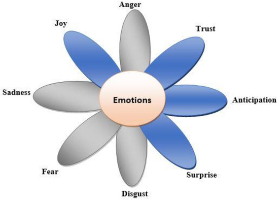 26] manually created a dataset of Arabic emotions using tweets, but the tweets were filtered from Egypt geolocation only. The emotions in this case were placed into the categories of happiness, joy, sadness, anger, disgust, fear, and surprise. Additionally, the data were categorized on the basis of only 5879 tweets. It has been observed that there are very few studies based on the Plutchik [