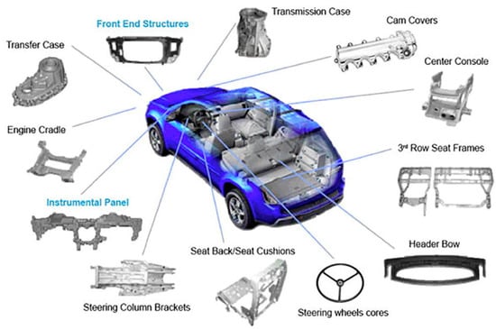 - Kulekci, M.K. Magnesium and Its Alloys Applications in Automotive Industry. Int. J. Adv. Manuf. Technol. 2008, 39, 851–865. [Google Scholar] [CrossRef]