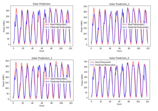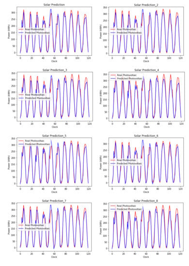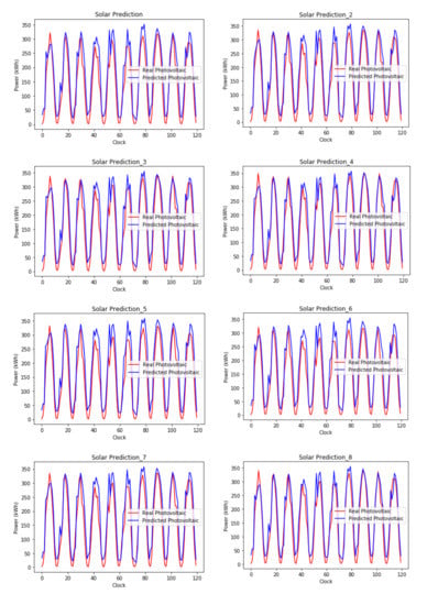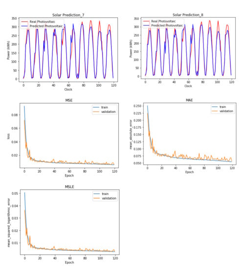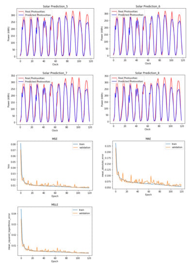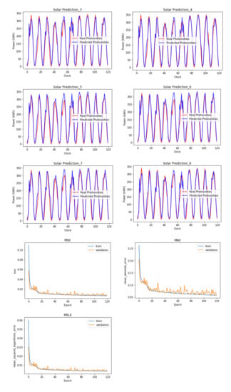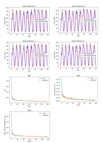Firstly the neural network models were executed separately several times, which selected the best performance experimental results for discussion. The training process and solar generation prediction in different sceneries are shown in Figure 3, Figure 4, Figure 5, Figure 6, Figure 7 and Figure 8.