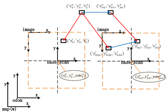 Dividing both sides by the time interval d t between two frames at the same time, it is considered that a dynamic object moves uniformly in the world coordinate system when d t is small. Then, Equation (19) can be transformed into a speed expression form: