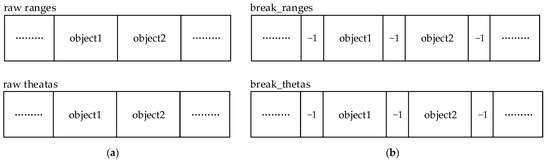 Figure 5. (a) The raw measurements stored structure; (b) The measurements stored structure after segmentation.