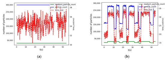 Figure 17. Number of particles and time cost (a) using the Nuss’s method; (b) using the method proposed in this paper.
