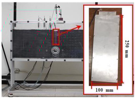 A pile made of aluminum was embedded in the sandy soil during the test. In general, a single steel pile has a size corresponding to approximately 1/10 of the tunnel size and has a diameter between 500 and 1200 mm. As shown in Figure 6, a single pile of size 7 mm × 100 mm × 250 mm (width × depth × height) was used in the test, and a 1/150 scale effect was applied. The load was increased using the loading device, and the behavior of the existing tunnel and surrounding ground under the influence of the pile was measured.