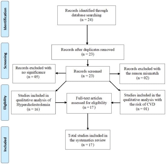 The literature search was made in PubMed and web of science using a mixture of keywords’ probiotics and hypercholesterolemia’ and ‘hypercholesterolemia and cardiovascular disease.’ The scientific reports were collected, which were published till 24 February 2021. The Method PRISMA (Preferred Reporting Items for Systematic Reviews and Meta-Analyses) was used in this systematic review to set the selection criteria of the collected clinical trials. Clinical studies have been included in the study concerning subjects with high and moderate CVD and hypercholesterolemia without the possibility of CVD.