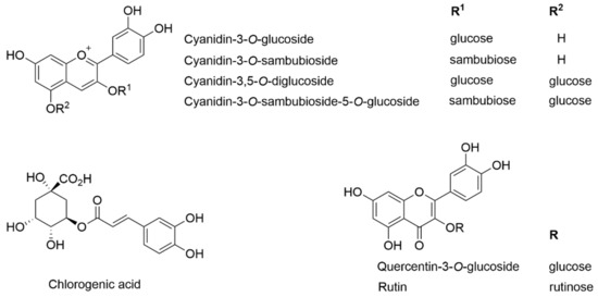 - Vlachojannis, C.; Zimmermann, B.F.; Chrubasik-Hausmann, S. Quantification of Anthocyanins in Elderberry and Chokeberry Dietary Supplements. Phytother. Res. 2015, 29, 561–565. [Google Scholar] [CrossRef]