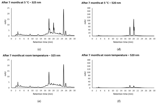 3.3. Effect of Storage on Individual Phenolic Compounds