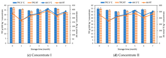 - Bermúdez-Soto, M.J.; Tomás-Barberán, F.A. Evaluation of Commercial Red Fruit Juice Concentrates as Ingredients for Antioxidant Functional Juices. Eur. Food Res. Technol. 2004, 219, 133–141. [Google Scholar] [CrossRef]