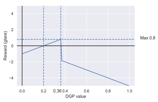 Figure 3 shows the graphical representation of the glare reward function. The total reward from glare can vary from −5 to 3.2.