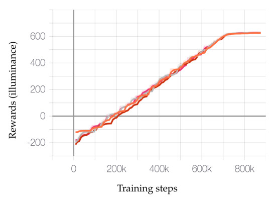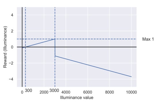 Figure 4 shows the graphical representation of the illuminance reward function. The total reward from illuminance can vary from to 4.
