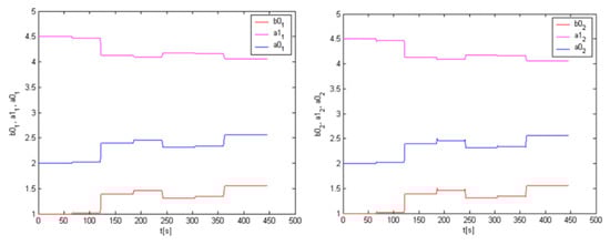 Controllers parameters during simulation—1st (left), 2nd (right).