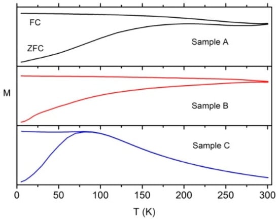 ZFC and FC curves measured for the three samples.