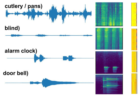 In Figure 3, we provide MFCCs of the audio samples collected from daily living events, which were used as inputs subsequently to be classified with the corresponding sound labels using a CNN.
