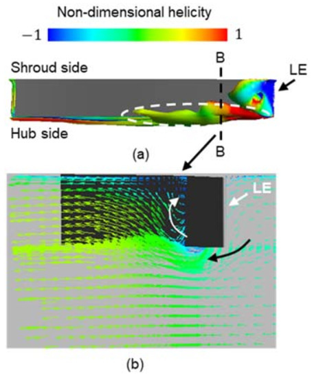 - Ohta, Y.; Fujisawa, N. Unsteady behavior and control of vortices in centrifugal compressor. J. Therm. Sci. 2014, 23, 401–411. [Google Scholar] [CrossRef]