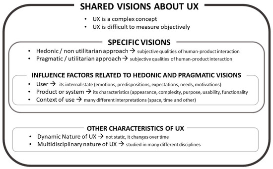 Based on the above discussion, the main visions about UX are summarized in Figure 1.
