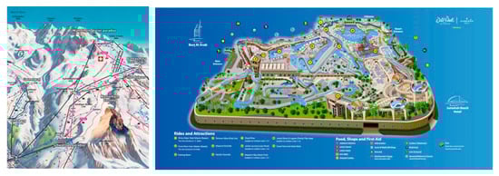 Examples of three-dimensional plans (sources: https://www.europe-mountains.com/, http://www.dubaiattractions.biz/ accessed on 3 May 2020).