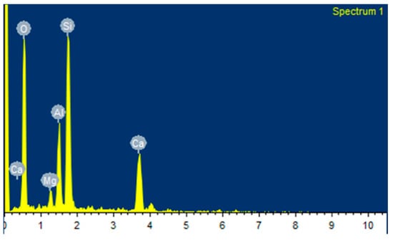 An example of the results of the chemical composition analysis performed on cupola slag samples restricted to its elemental components is shown in Figure 7 and Table 4 below.