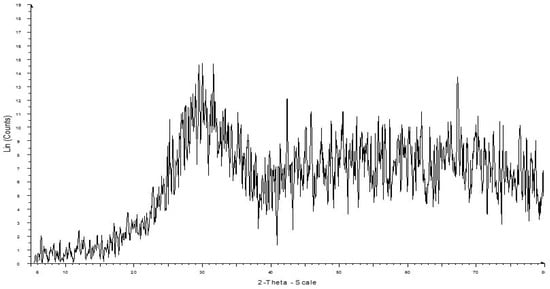 The pozzolanic reactivity of the slag will become higher as the degree of crystallinity decreases. The high degree of vitrification of the slag used is shown by the lack of crystalline peaks in its X-ray diffractogram, which confirms that it is a highly amorphous material, see Figure 11.