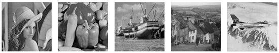where p is the noise ratio or probability of noise. x i , j is the pixel value at i row and j column. n i , j and o i , j are pixel intensities of gray-scale images at position ( i , j ) ; they correspond to the original pixel and the noisy pixel, respectively. The pixel intensity of n i , j is between maximum and minimum ( [ I m i n ,   I m a x ] in an 8-bit gray-scale image,   I m i n = 0 ,   I m a x = 255 ). As a result, there are two forms of noise. One form of noise is known as salt and pepper noise. It has a fixed value at both ends of the gray scale. The other type is uniform impulse noise, which has a uniform distribution at [ I m i n ,   I m a x ] and is also known as random-valued impulse noise. The second sort of noise was examined in this research.