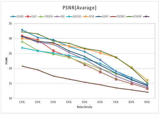Table 9. The ranking of the 10 filter models according to the three experts’ average evaluations at 70% noise density for the five experimental images.