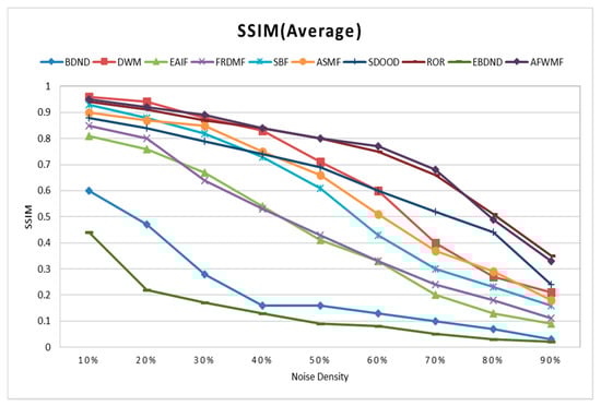 Table 17. The SSIM average value for the five experimental images at different noise densities from the 10 filter models.