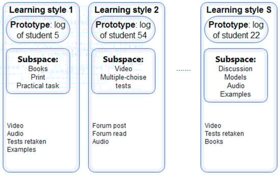 - prototype presented as log of behavioral activities of the student; this log best represents the cluster; in turn, a cluster represents learning style, and its features (for learning style modeling–behavioral activities) have cluster labels;