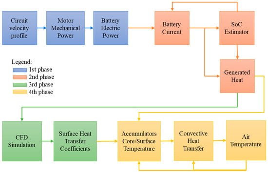 The steps followed to determine the temperatures in the core of cells inside a battery segment, presented in Figure 1, are as follows: