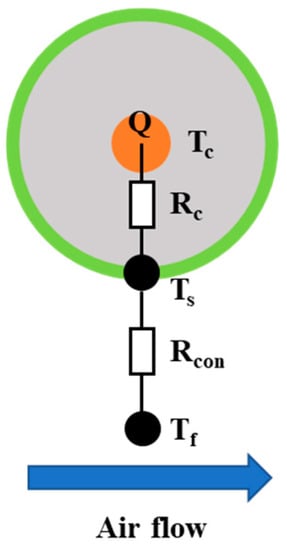 The convective heat transfer rate on a cell’s surface is defined by Equation (4).