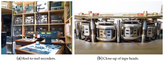 25]). For the occasion, the machine was suitably overhauled with regards to both the electrical components and the mechanical ones, depending on the type of magnetic tape used for the experiment, a 1/4 inch RTM SM911. The Studer A810 has four recording and reading speeds, but only the speed of 15 ips (inch-per-second) was used for the experiment. It is well known, as reported in [