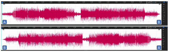 The samples recorded on the magnetic test tape were the result of a selection between different audio materials, lasting about 15 s each. Regarding the characteristics of the chosen ones, these firstly had to cover the entire frequency response spectrum of the Studer A810. Then, they had to present peculiarities useful for subsequent computer analysis, for example, having very evident transients, as in the case of a snare drum, and coming from heterogeneous sources for timbre and other sound qualities. For completeness of information, the samples used by the authors for the experiment were born-digital audio files, stereo interleaved, normalized to an average RMS around −18 dB, with .wav extension and 24-bit 48 kHz resolution.