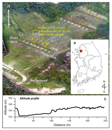 - Lee, J.-H.; Park, K.-S. Heavy metal distribution in soils from the Maehyang-ri inland shooting range area. J. Korean Soc. Water Environ. 2008, 24, 407–414. [Google Scholar]