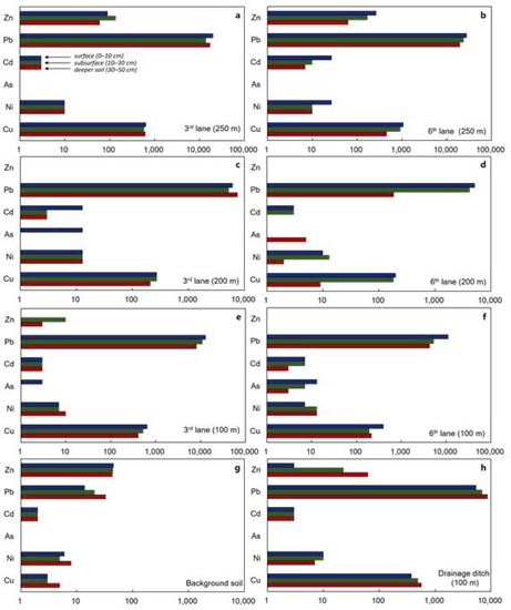 - Sanderson, P.; Bolan, N.; Bowman, M.; Naidu, R. Distribution and availability of metal contaminants in shooting range soils around Australia. In Proceedings of the 19th World Congress of Soil Science: Soil Solutions for a Changing World, Brisbane, Australia, 1–6 August 2010; pp. 65–67. [Google Scholar]