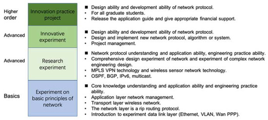 In the traditional teaching mode, students can only go to the network laboratory to undertake experimental learning, and their learning is inevitably restricted by time and space. A considerable part of the experimental time is occupied by traditional verification and analytical experiments, and time and conditions are insufficient to carry out more difficult research and innovation experiments. Via the online learning model, it is easy to carry out experiments of medium or lower difficulty as online experiments. As part of the preparation process, students are required to complete the experiment online before participating in the experiment in class. Teachers and TAs provide remote online experiment guidance. After students have completed the basic online experiments, they can conduct comprehensive analytical and design experiments in the laboratory, and can even design experimental content independently. The classroom is mainly for one-to-one guidance and small-scale discussions.