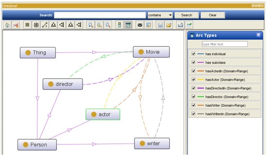 In the ontology library structure diagram, in order to express the structure of the knowledge graphs more clearly, we have derived three entity classes, namely actor, writer, and director entity under the Person entity class, so that the relation between the three and the Movie entity class and the inverse relation can be shown more vividly. At the same time, in order to make the structure diagram more concise, we did not show the data attributes of the entities in it.