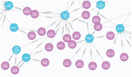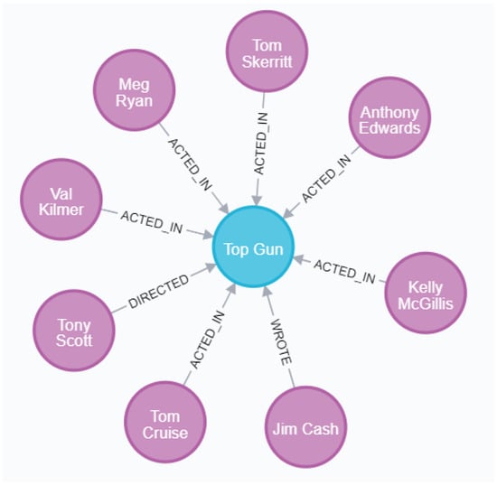 - Figure 5 shows the set of all entities connected to a random movie entity in the knowledge graph. The picture shows the relations between the entities of the movie “Top Gun” and various contributors, including actors, directors and screenwriters.